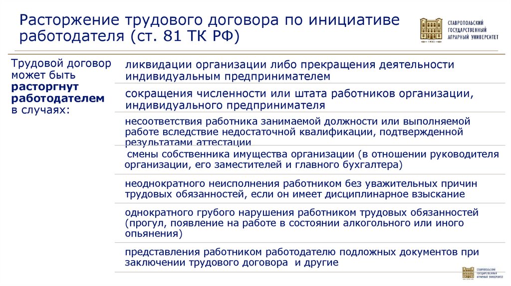 - Заключение и прекращение трудового договора