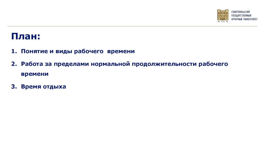 - Понятие и виды рабочего времени