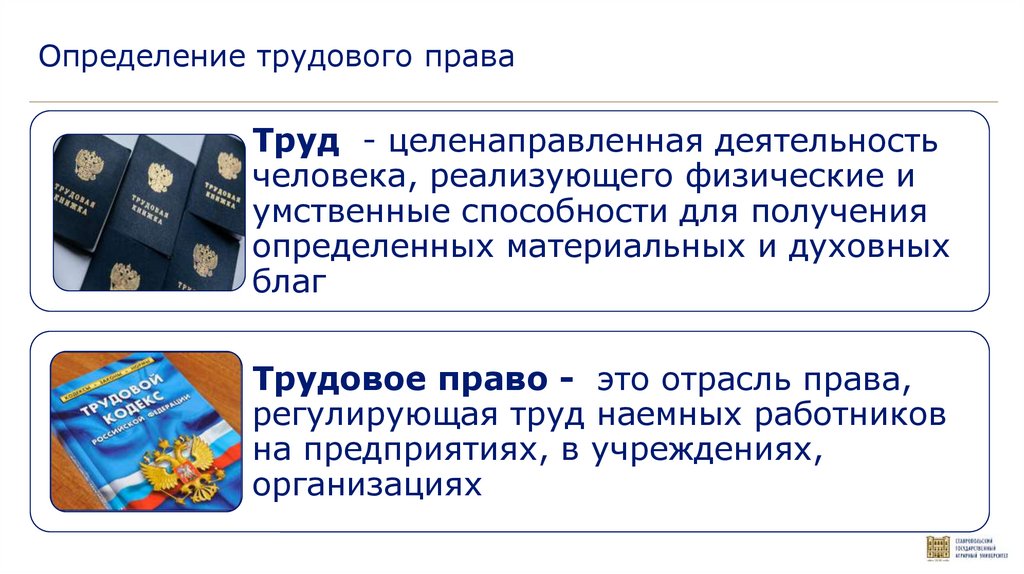 Определение трудового праваТруд - целенаправленная деятельность