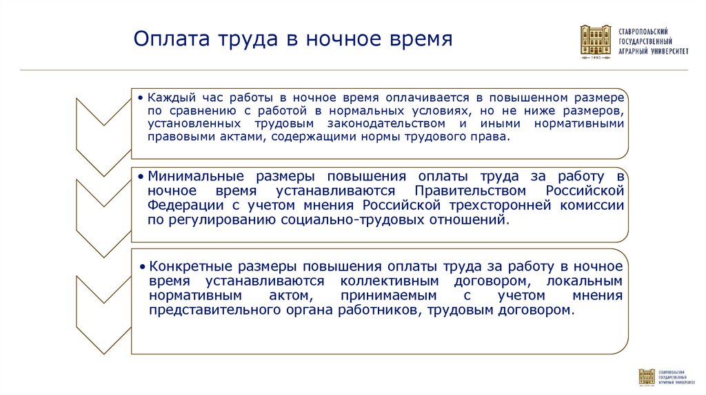 • Конкретные размеры повышения оплаты труда за работу в ночное