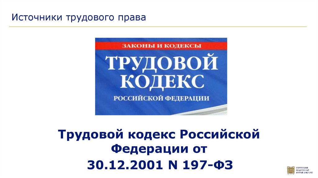 Источники трудового праваТрудовой кодекс Российской