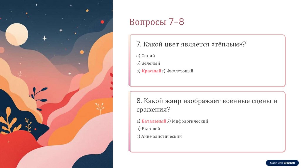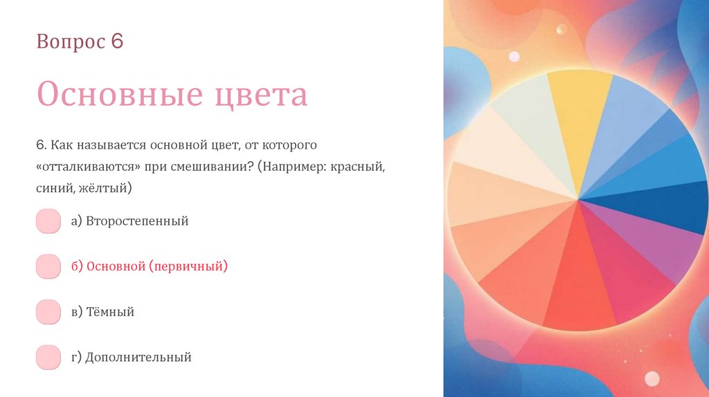 Вопросы 7-87. Какой цвет является «тёплым»?