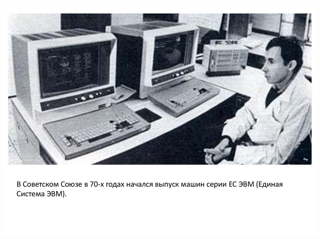 В Советском Союзе в 70-х годах начался выпуск машин серии ЕС ЭВМ (ЕдинаяСистема ЭВМ).