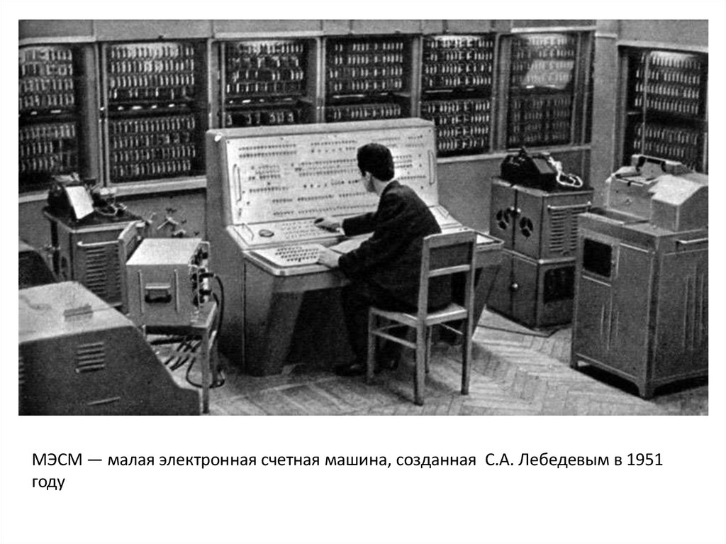 МЭСМ — малая электронная счетная машина, созданная С.А. Лебедевым в 1951году