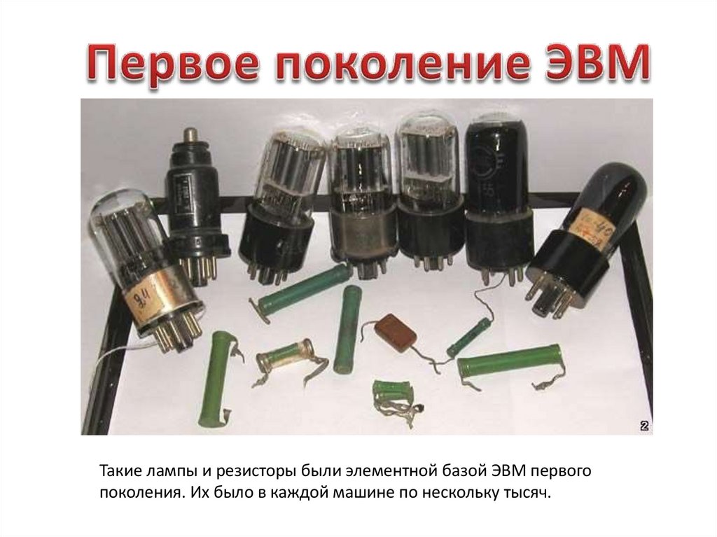 Такие лампы и резисторы были элементной базой ЭВМ первогопоколения. Их было в каждой машине по нескольку тысяч.
