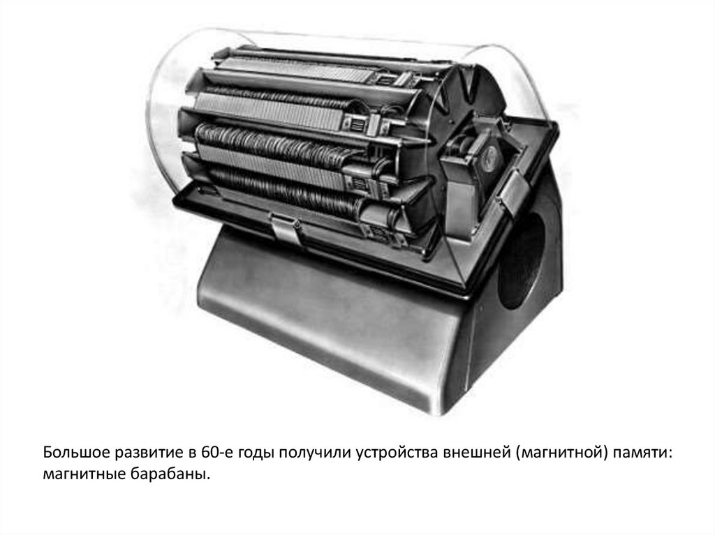 Большое развитие в 60-е годы получили устройства внешней (магнитной) памяти:магнитные барабаны.