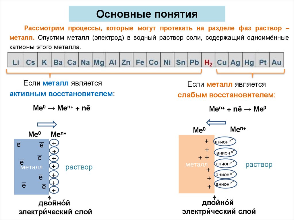 металл. Опустим металл (электрод) в водный раствор соли, содержащий одноимённые