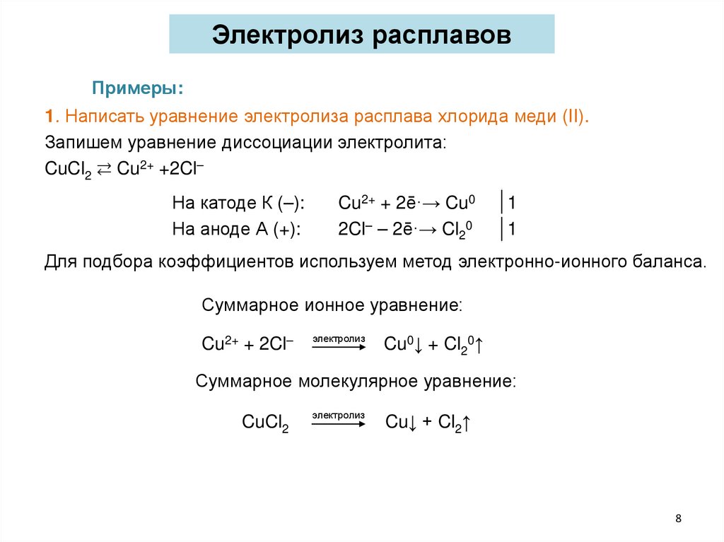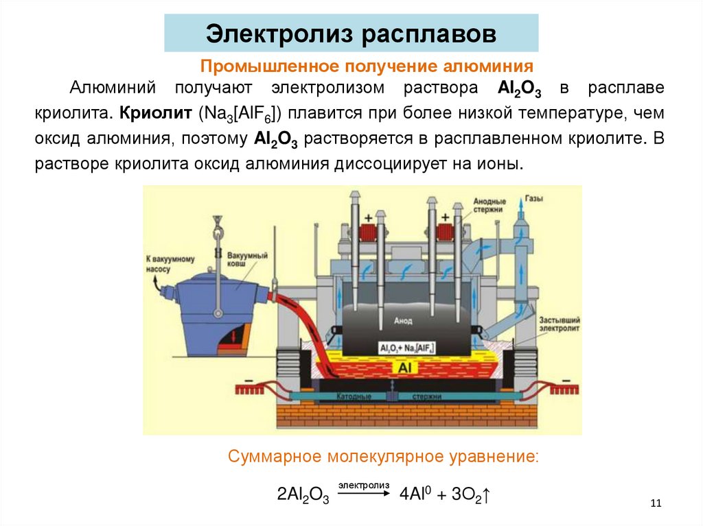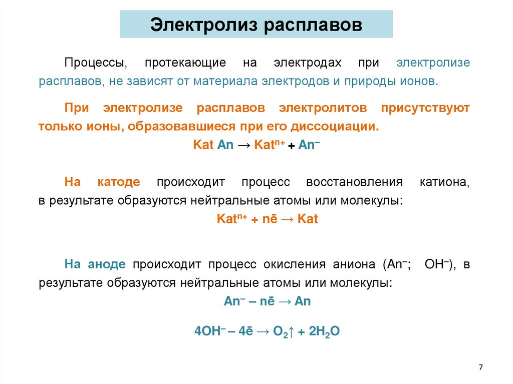 электродах, погружённых в расплав (нет воды) или раствор электролита