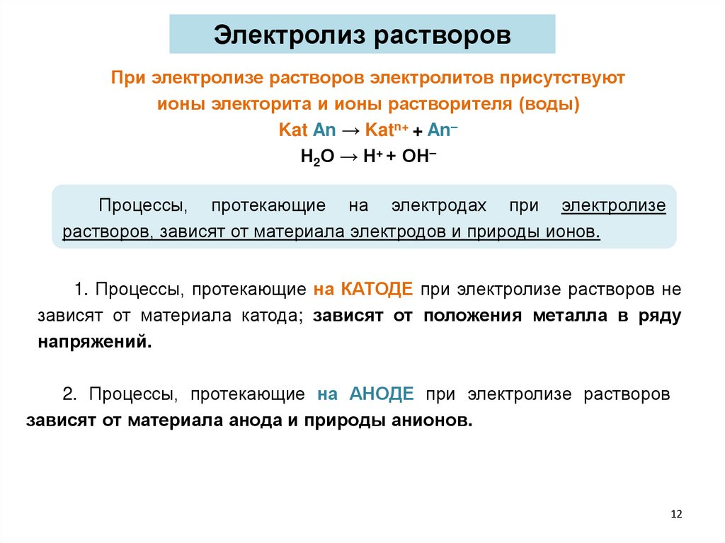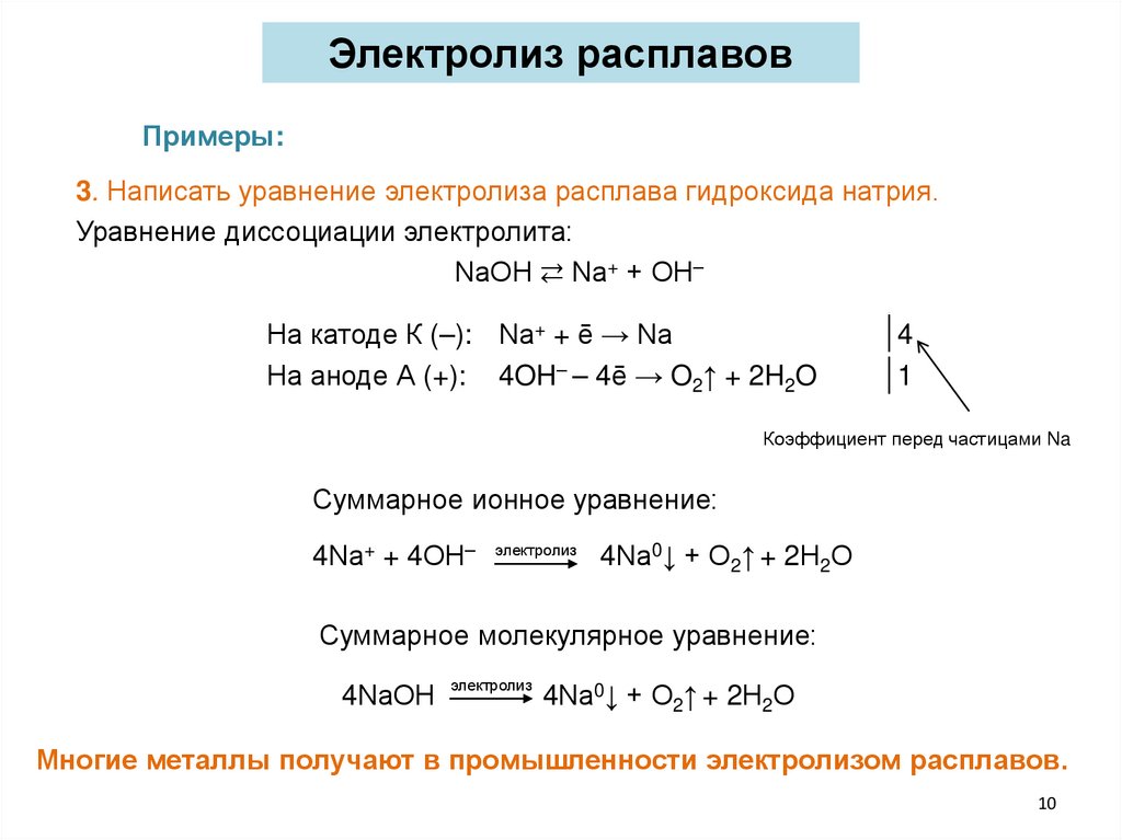 Электролиз распла́вов и растворов отличается, так как в растворах кроме