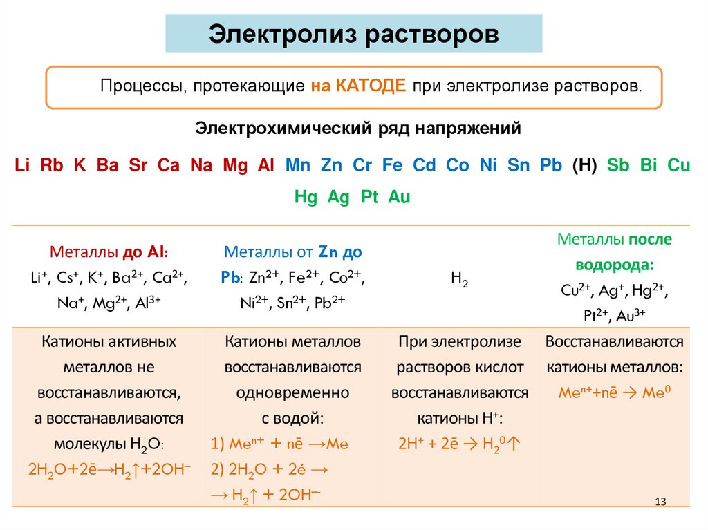 1. Рассмотрим электролиз раствора соли, содержащей катион до Al и
