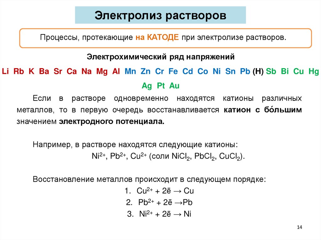 2. Рассмотрим электролиз раствора соли, содержащий катион от Zn до