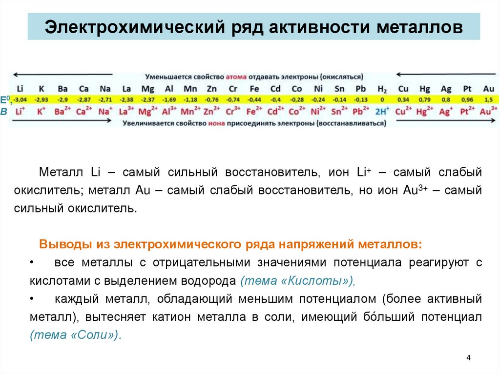 металл), вытесняет катион металла в соли, имеющий бо́льший потенциал