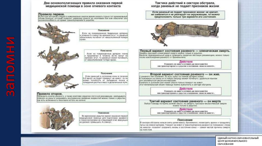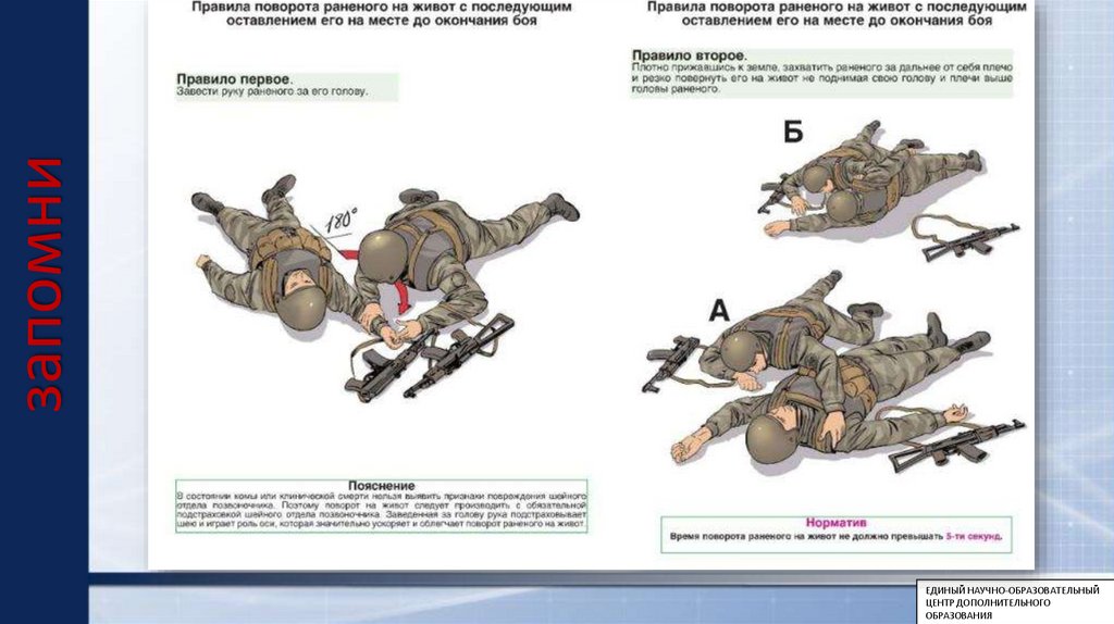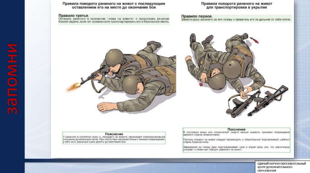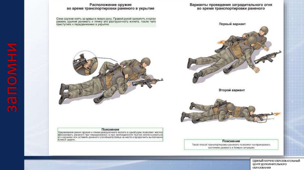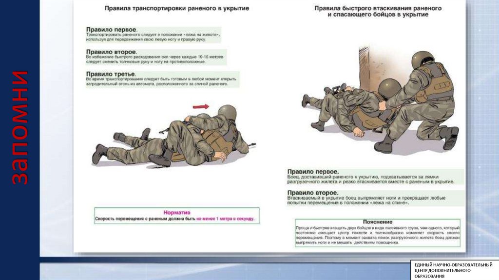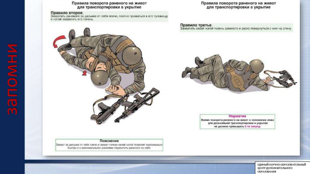 4. При нахождении под воздействием огня противника - эвакуировать раненого в