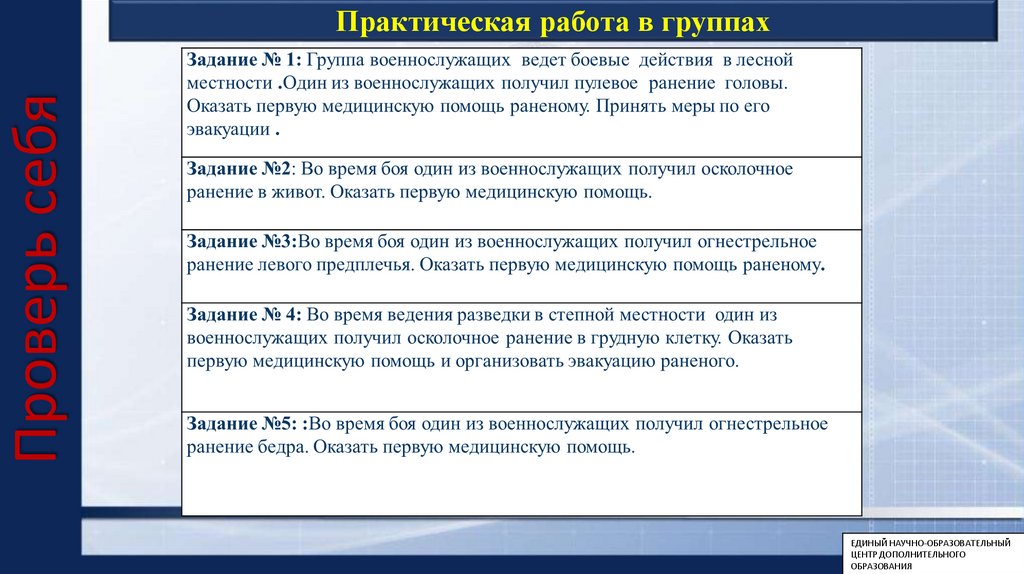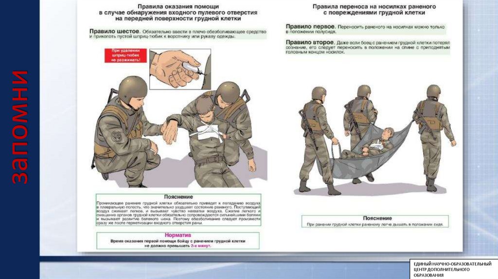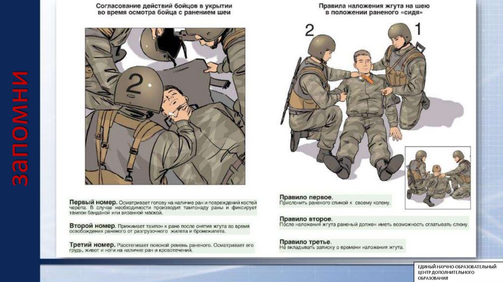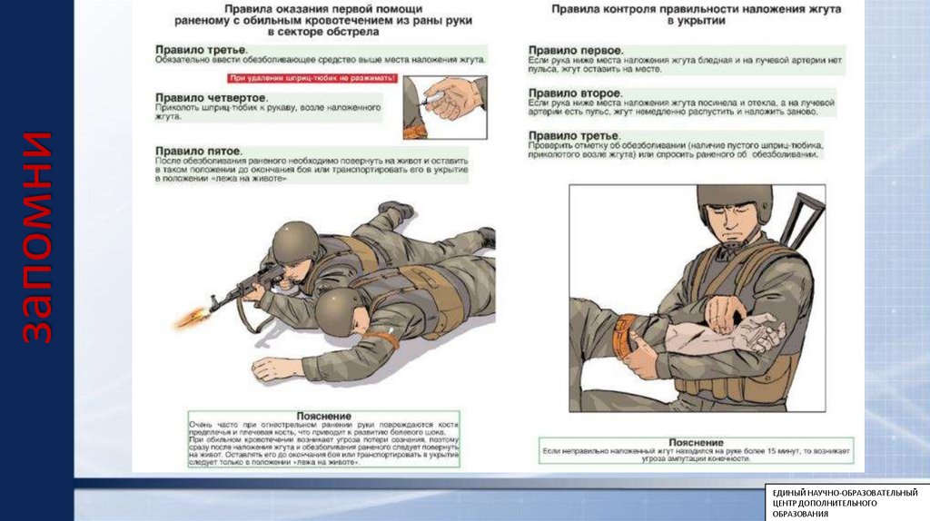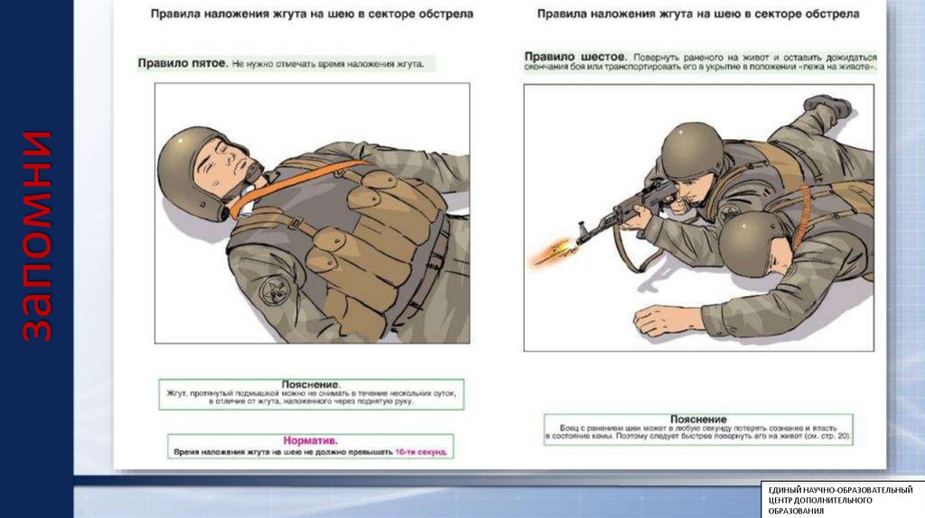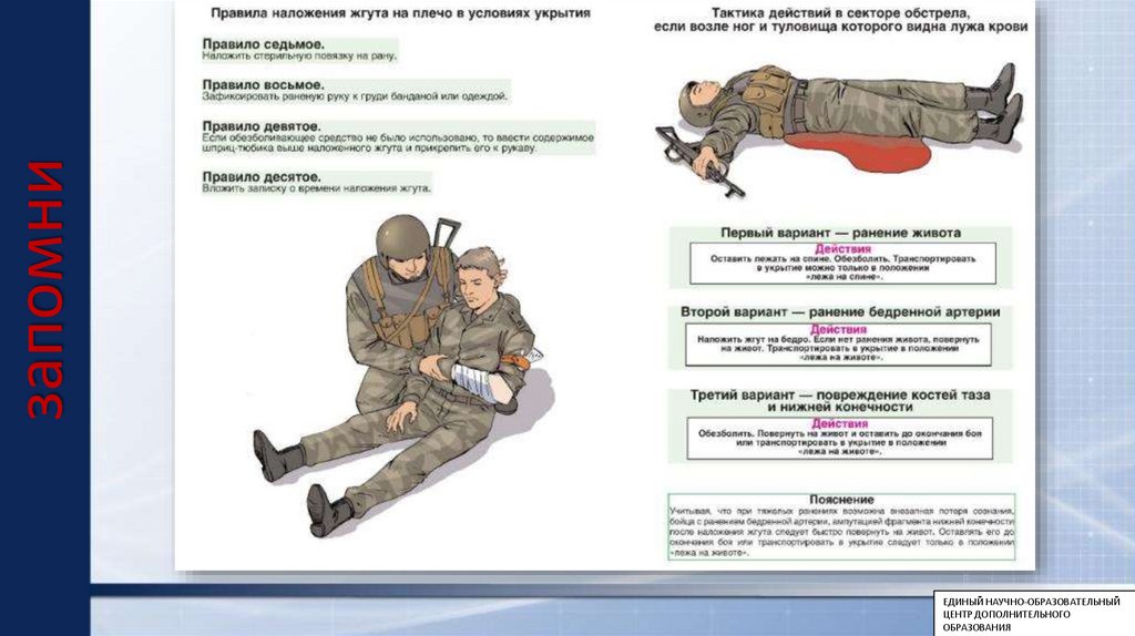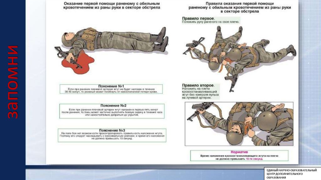 4. При нахождении под воздействием огня противника - эвакуировать раненого в
