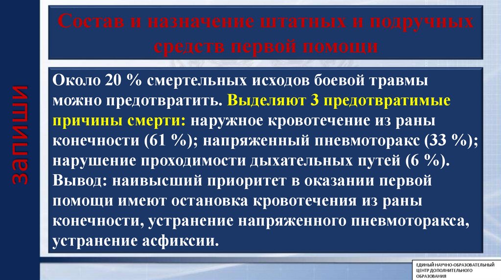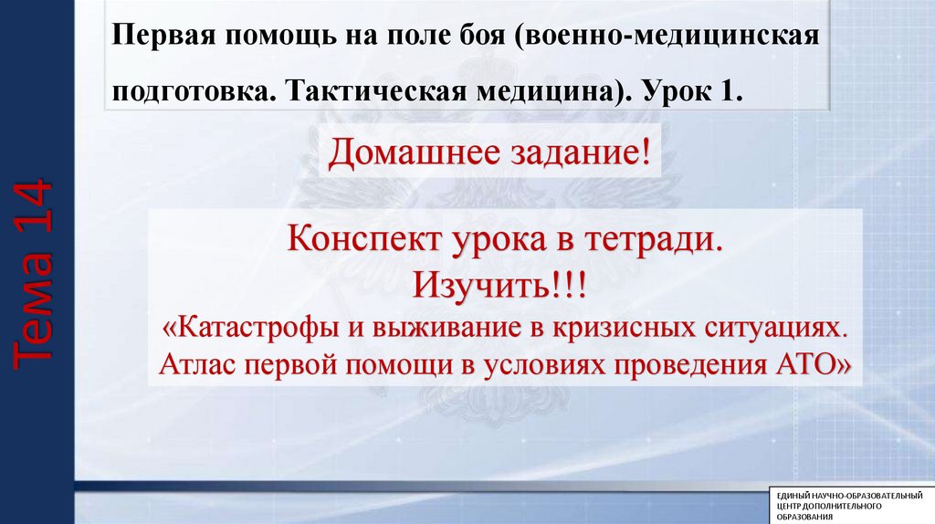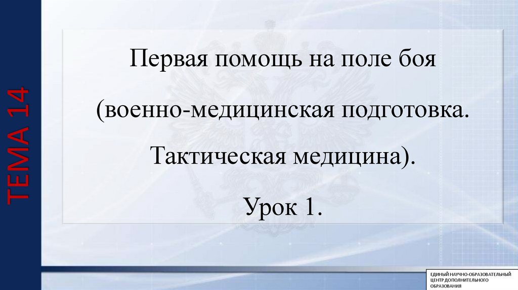 Первая помощь на поле боя (военно-медицинскаяподготовка. Тактическая медицина). Урок 1.