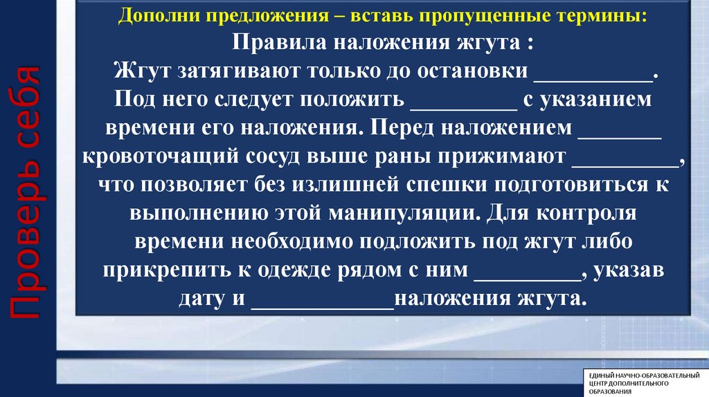 Проверь себяДополни предложения – вставь пропущенные термины: