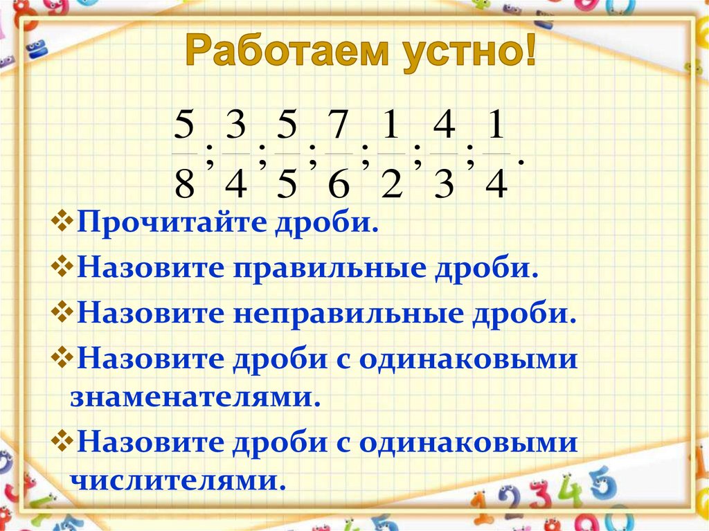Назовите правильные дроби.