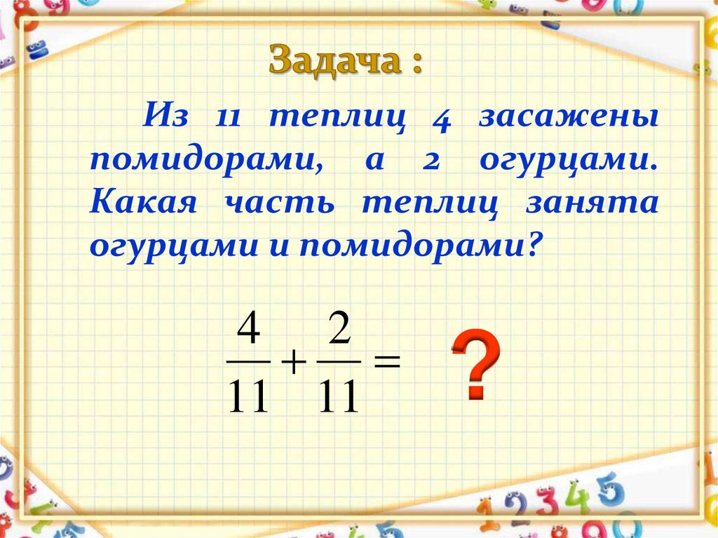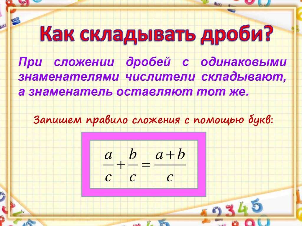 сложение дробей с одинаковыми знаменателями