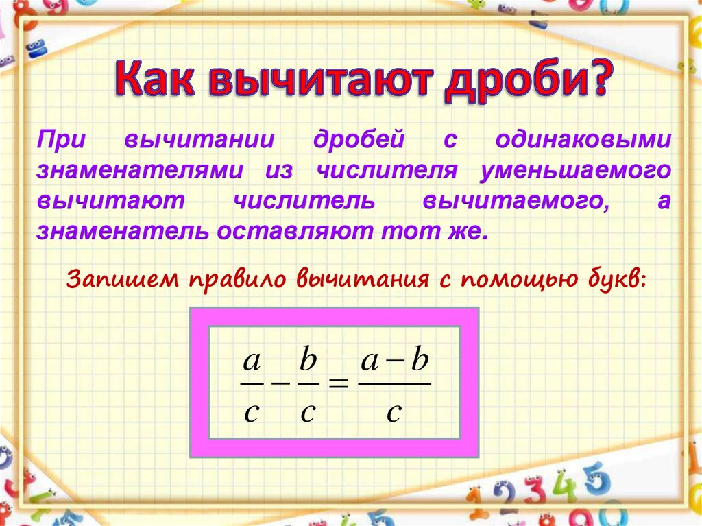 При вычитании дробей с одинаковымизнаменателями из числителя уменьшаемого