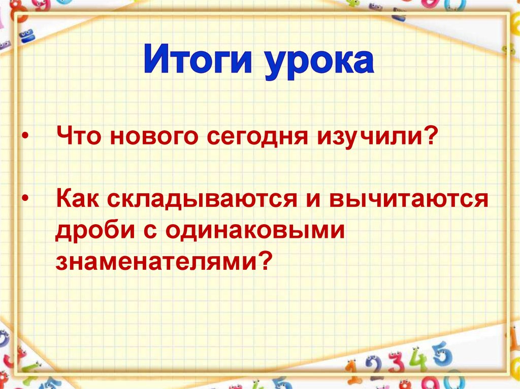 • Что нового сегодня изучили?• Как складываются и вычитаются