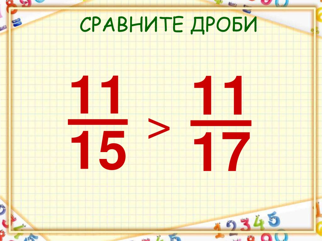 СРАВНИТЕ ДРОБИ11 > 11