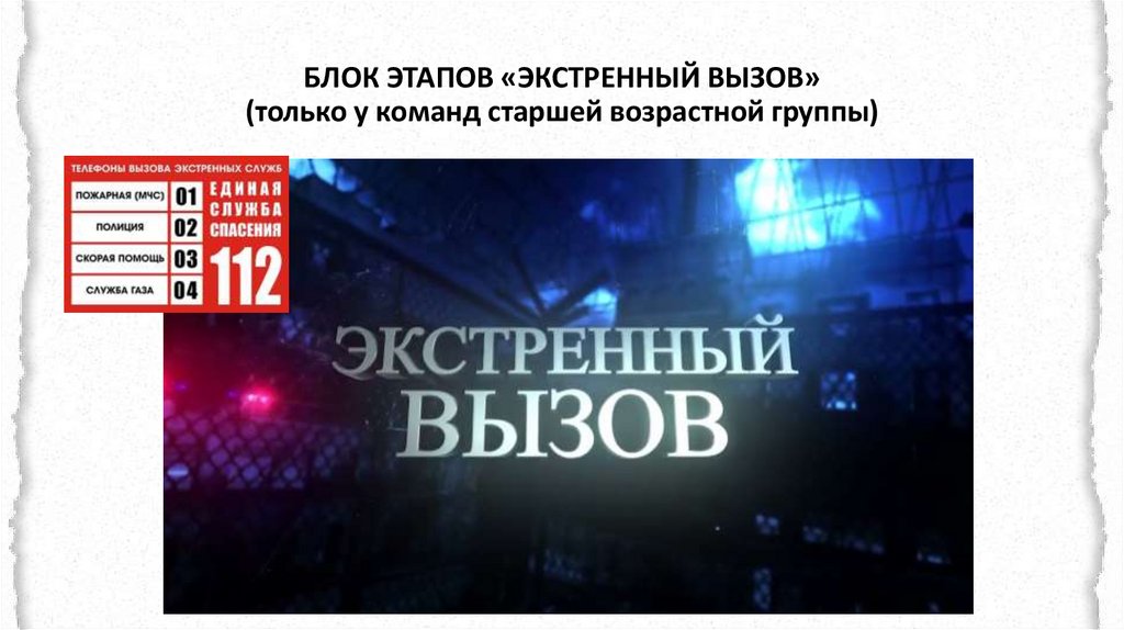 БЛОК ЭТАПОВ «ЭКСТРЕННЫЙ ВЫЗОВ»(только у команд старшей возрастной группы)