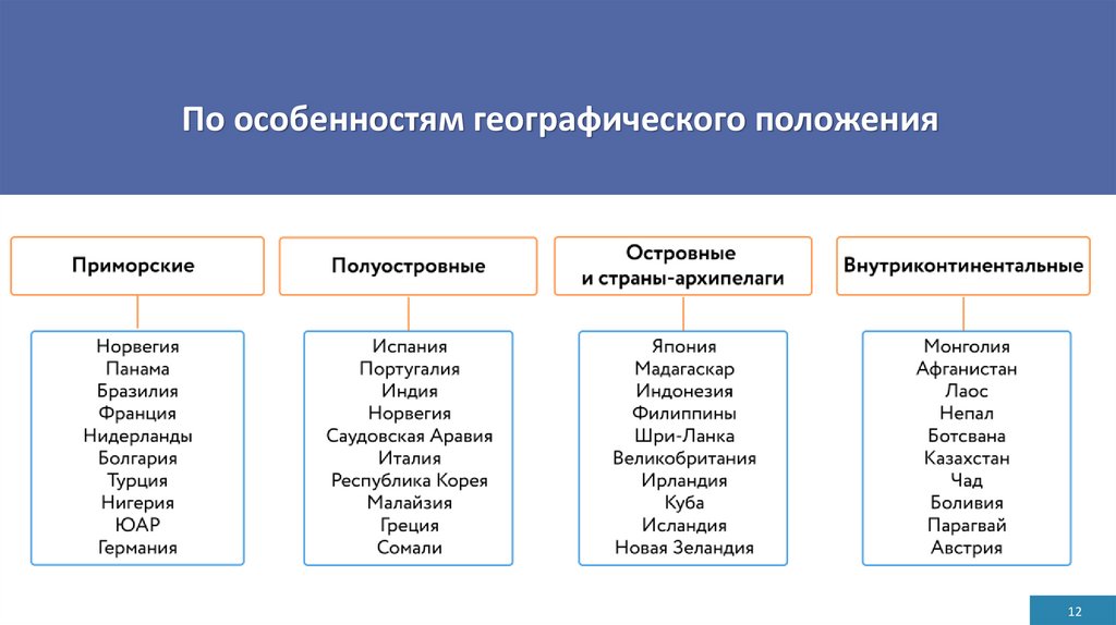 По особенностям географического положения12