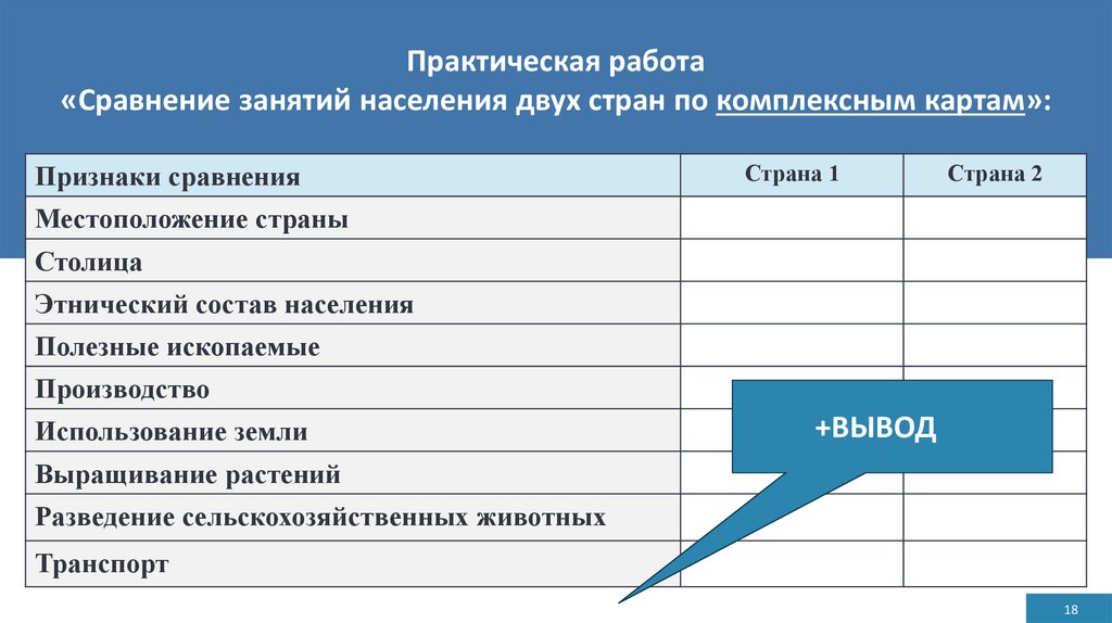 Практическая работа«Сравнение занятий населения двух стран по комплексным картам»: