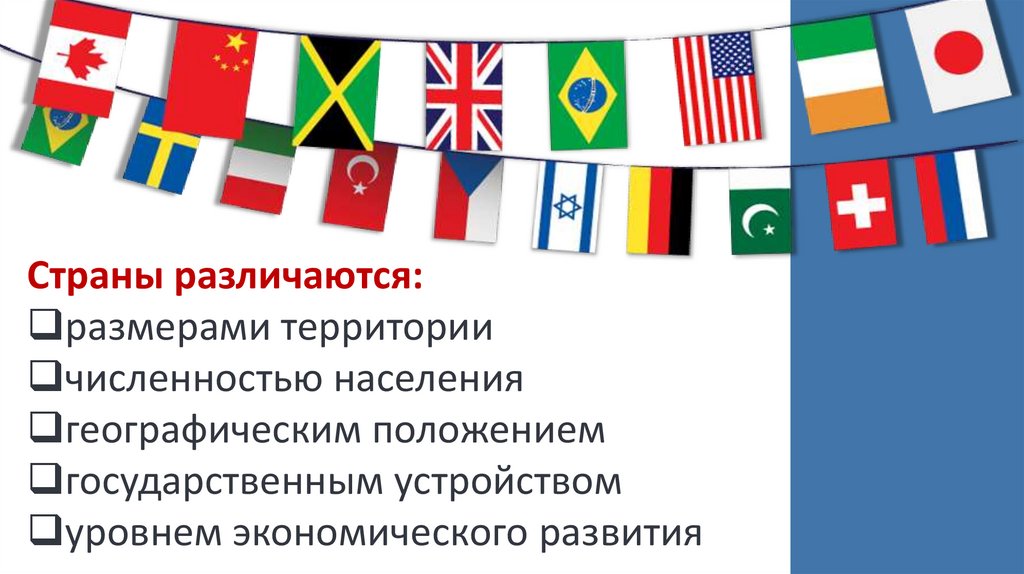 Страны различаются:размерами территории