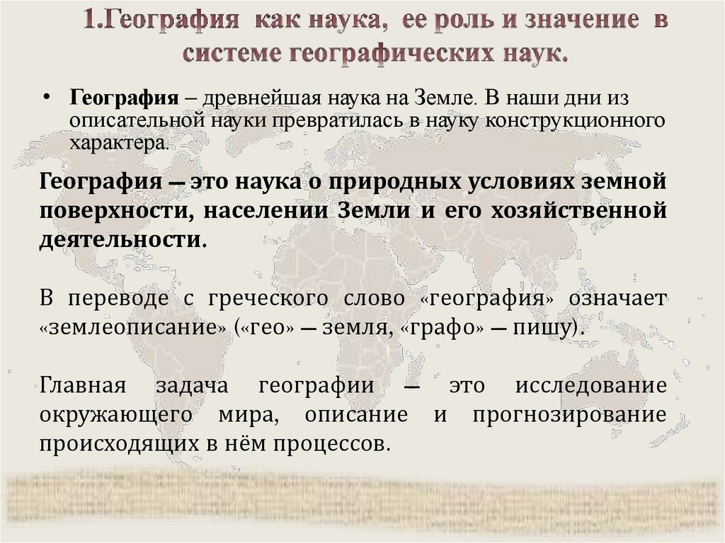 • География – древнейшая наука на Земле. В наши дни изописательной науки превратилась в науку конструкционного