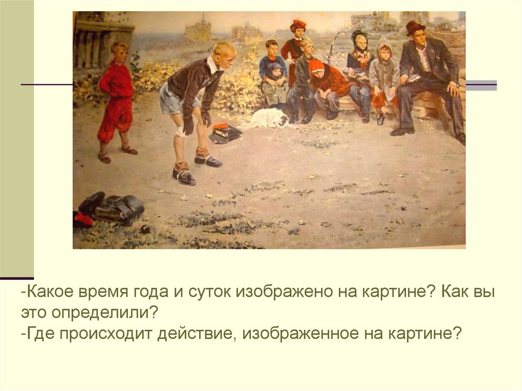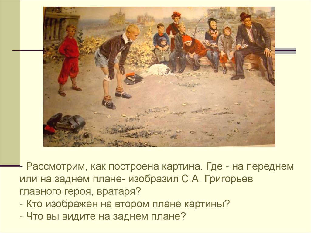 - Рассмотрим, как построена картина. Где - на переднемили на заднем плане- изобразил С.А. Григорьев