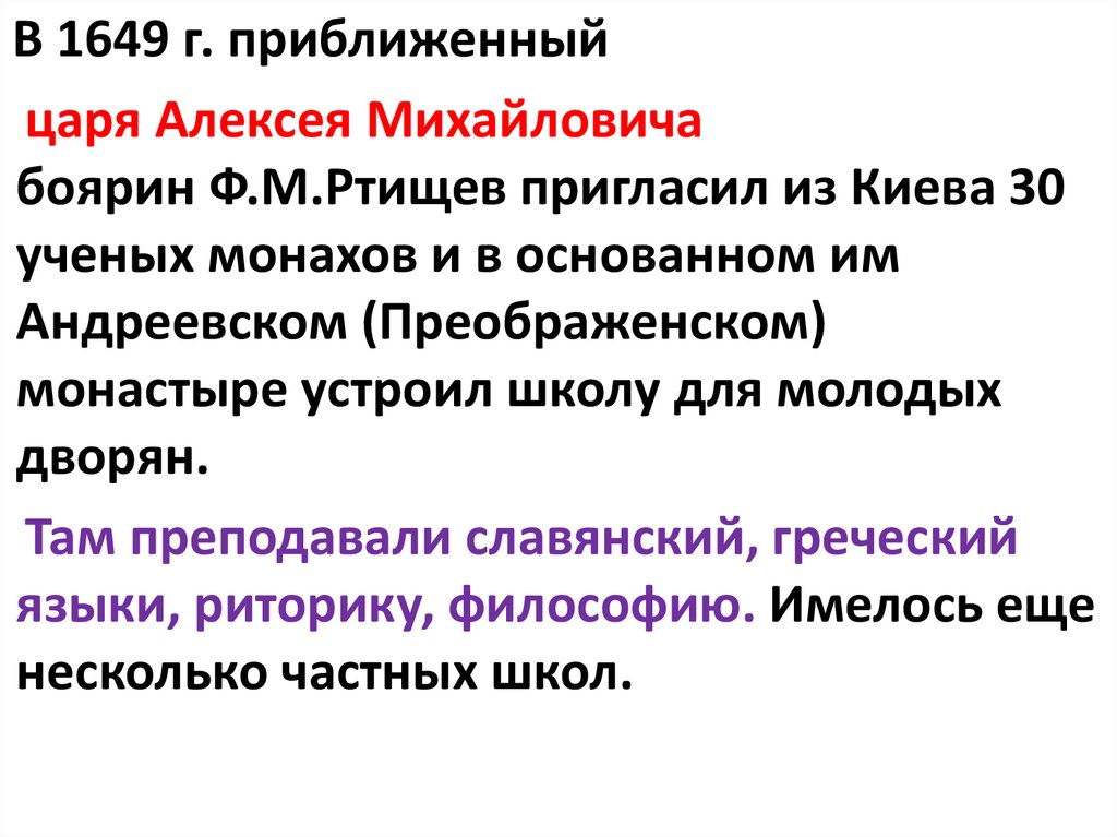боярин Ф.М.Ртищев пригласил из Киева 30