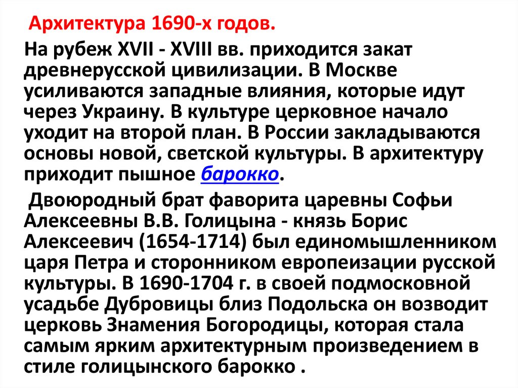 - 17.4. Культура России в XVII веке