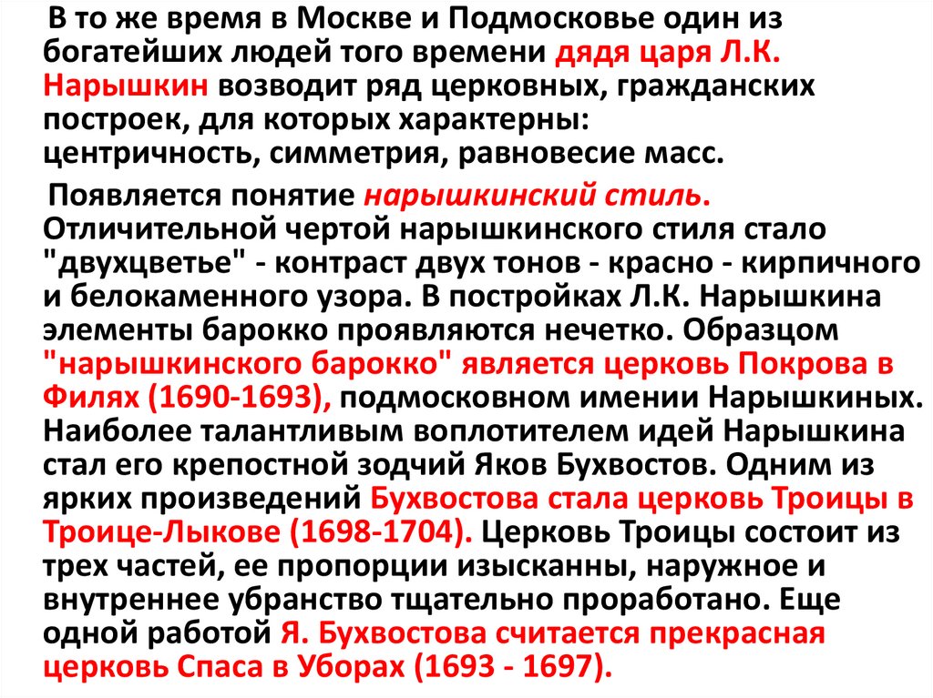и белокаменного узора. В постройках Л.К. Нарышкина