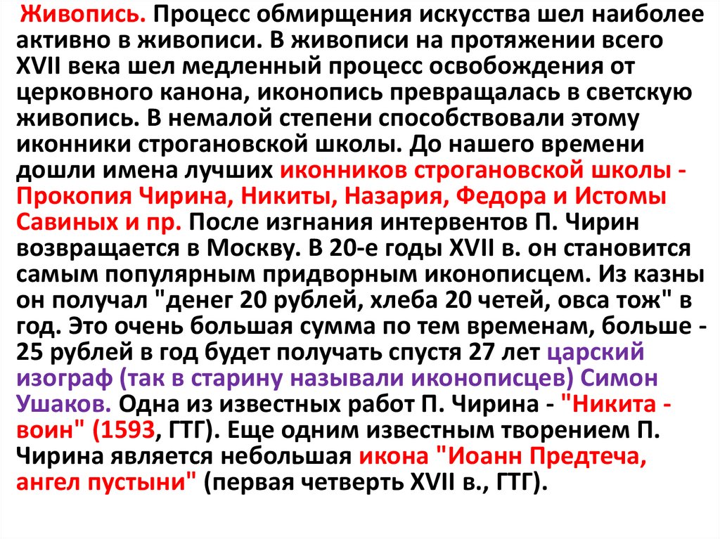 дошли имена лучших иконников строгановской школы Прокопия Чирина, Никиты, Назария, Федора и Истомы