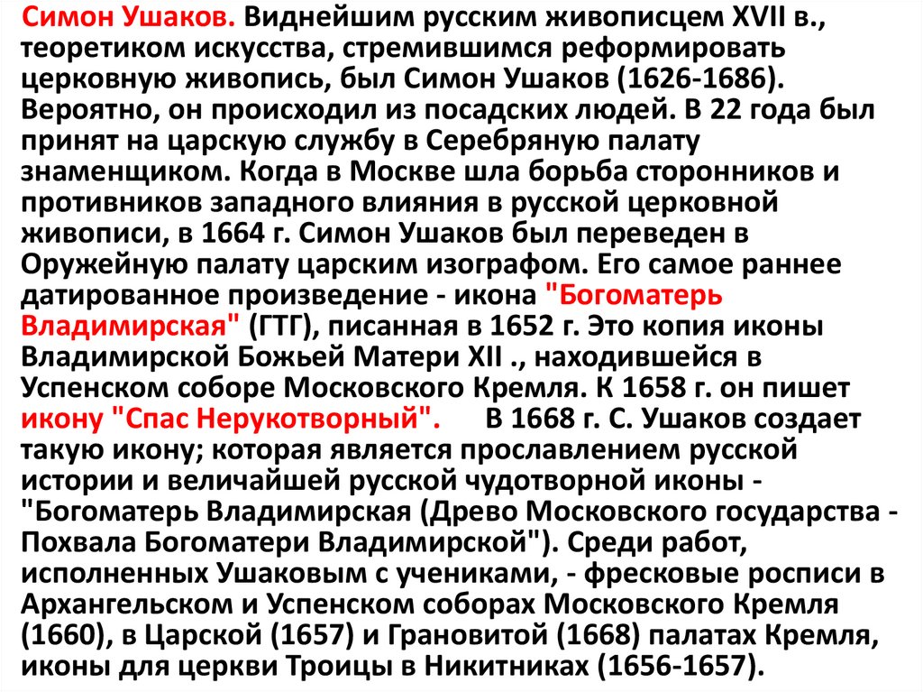 Симон Ушаков. Виднейшим русским живописцем XVII в.,теоретиком искусства, стремившимся реформировать