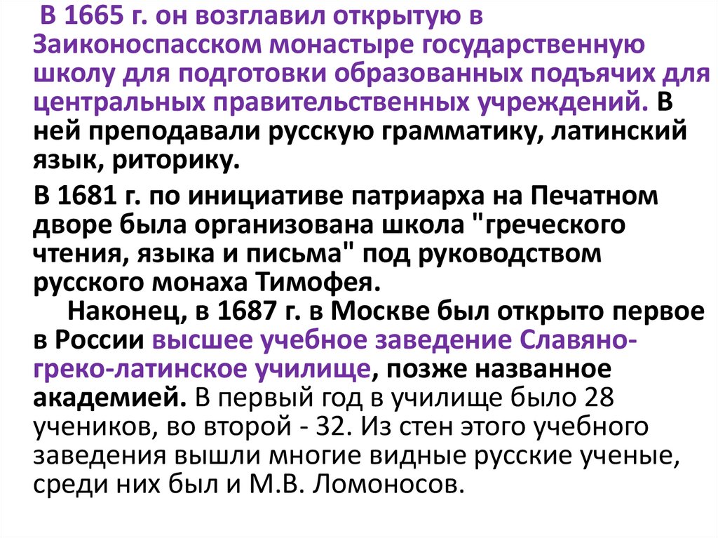 В 1665 г. он возглавил открытую вЗаиконоспасском монастыре государственную