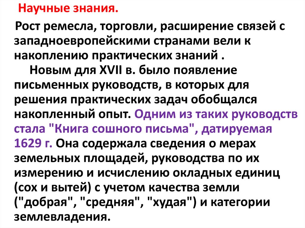 Научные знания.Рост ремесла, торговли, расширение связей с