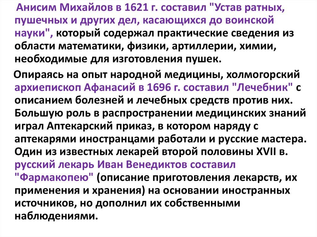 русский лекарь Иван Венедиктов составил