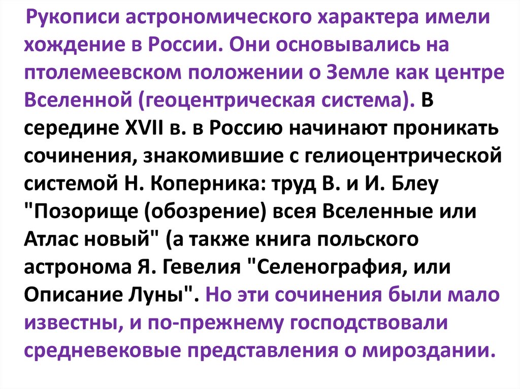 Рукописи астрономического характера имелихождение в России. Они основывались на