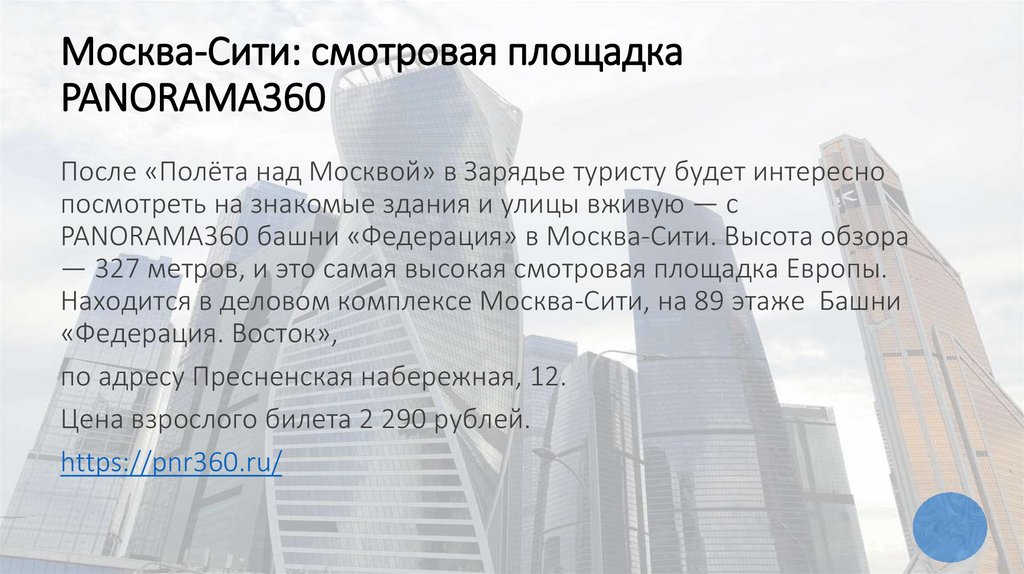 PANORAMA360 башни «Федерация» в Москва-Сити. Высота обзора