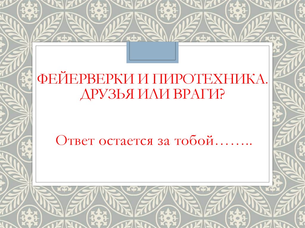 ФЕЙЕРВЕРКИ И ПИРОТЕХНИКА.ДРУЗЬЯ ИЛИ ВРАГИ?