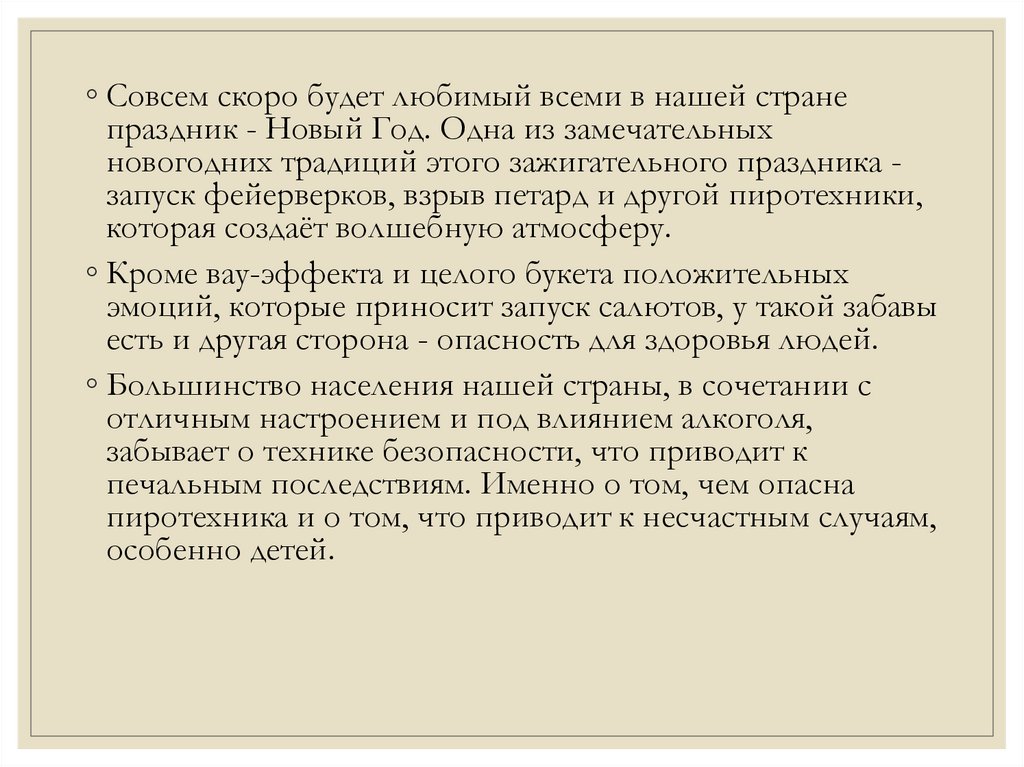 ◦ Часто люди пускают салюты в состоянии алкогольного опьянения.