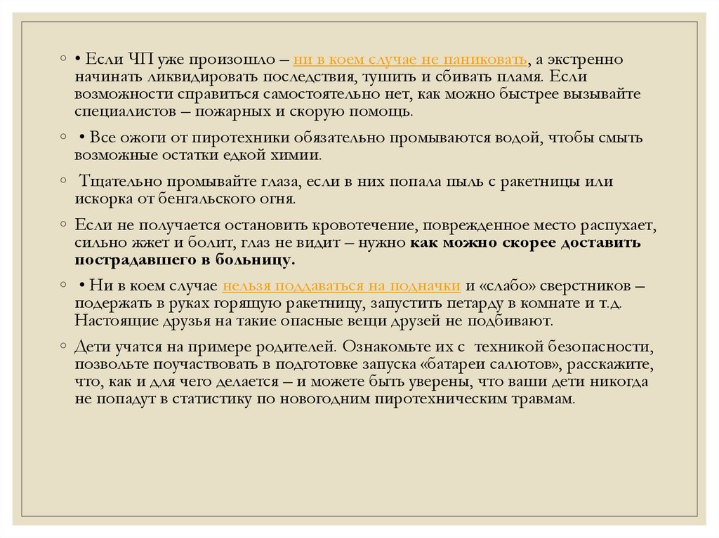 ситуаций:◦ Не использовать стреляющую вверх пиротехнику в тесных дворах и рядом с
