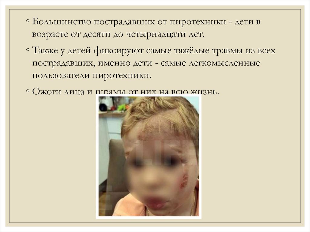 ◦ Большинство пострадавших от пиротехники - дети ввозрасте от десяти до четырнадцати лет.
