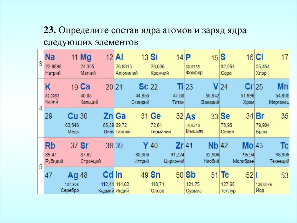 23. Определите состав ядра атомов и заряд ядраследующих элементов