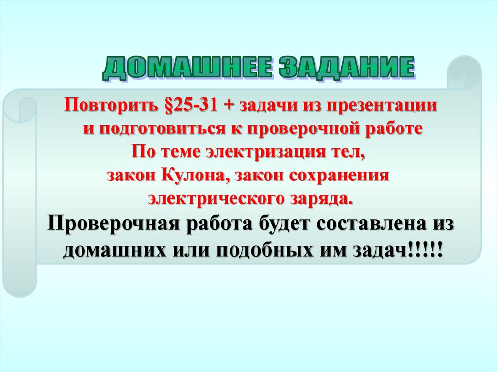 Повторить §25-31 + задачи из презентациии подготовиться к проверочной работе