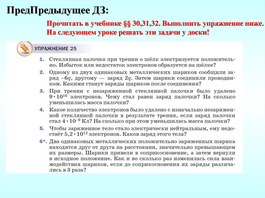 ПредПредыдущее ДЗ:Прочитать в учебнике §§ 30,31,32. Выполнить упражнение ниже.