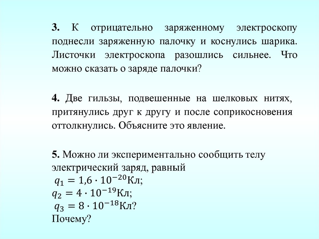 3. К отрицательно заряженному электроскопуподнесли заряженную палочку и коснулись шарика.