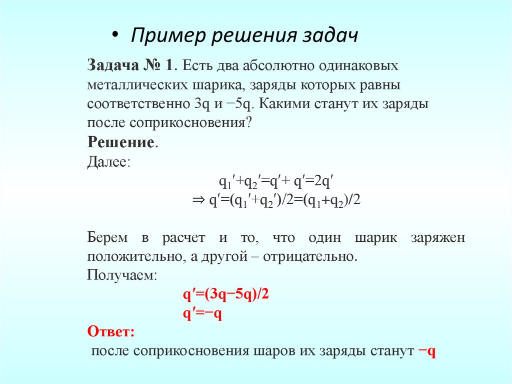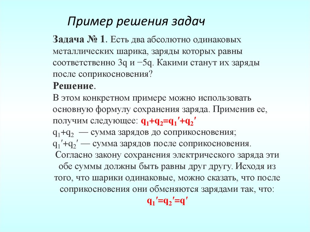 q1′+q2′ — сумма зарядов после соприкосновения.